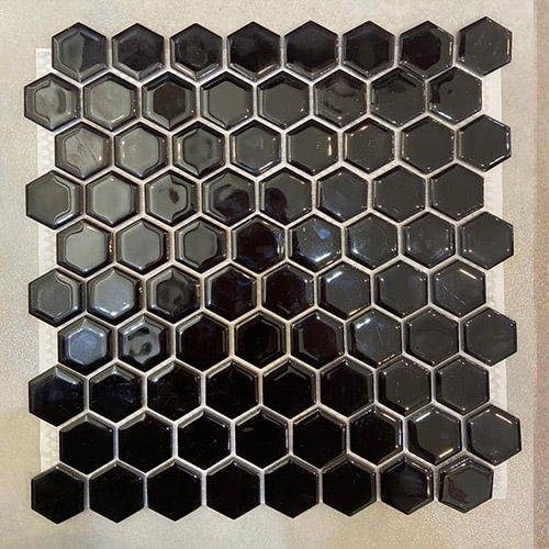 کاشی ششضلعی مشکی با لعاب درخشان. مناسب دکورهای لوکس و مدرن.
